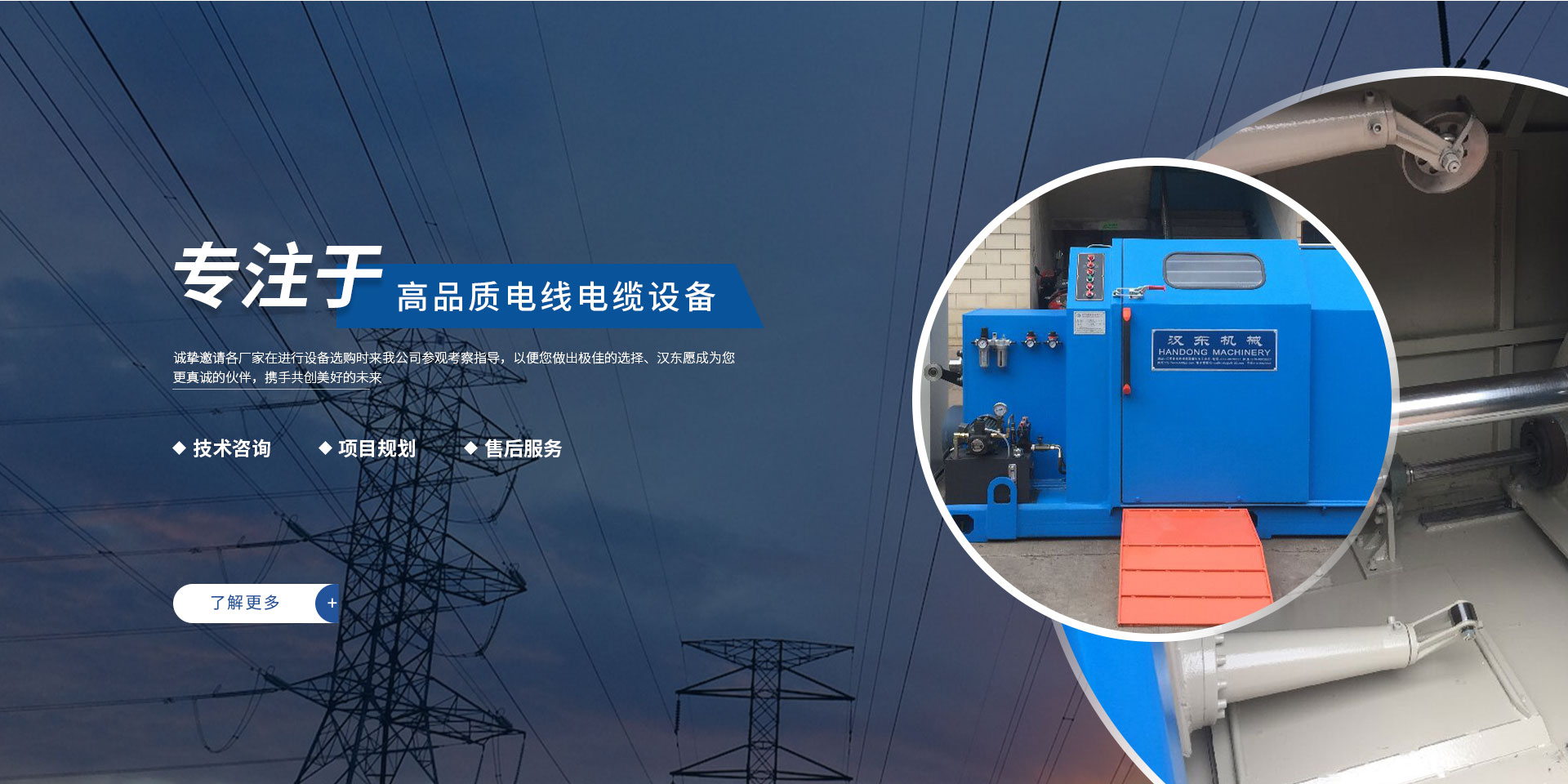 常州漢東機械始創(chuàng)于2006年,是集電線電纜機械設計、開發(fā)、制造、安裝、調(diào)試為一體化的高科技企業(yè)。本公司自開業(yè)以來,積極引進日本,歐美等國外電線電纜設備之先進技術,先后成功推出了達到行業(yè)先進水平的電線電纜設備,主要產(chǎn)品有擠出、繞包、束線、成纜等電線電纜固定設備。在提供系統(tǒng)設備的同時,還向客戶提供售前技術咨詢、項目規(guī)劃、以及售后服務。我公司本著“以人為本、科技先導、用戶為上”的宗旨,為客戶提供牢靠的產(chǎn)品與省心的服務。漢東愿成為您更真誠的伙伴,攜手共創(chuàng)美好的未來! 了解更多+大核心優(yōu)勢